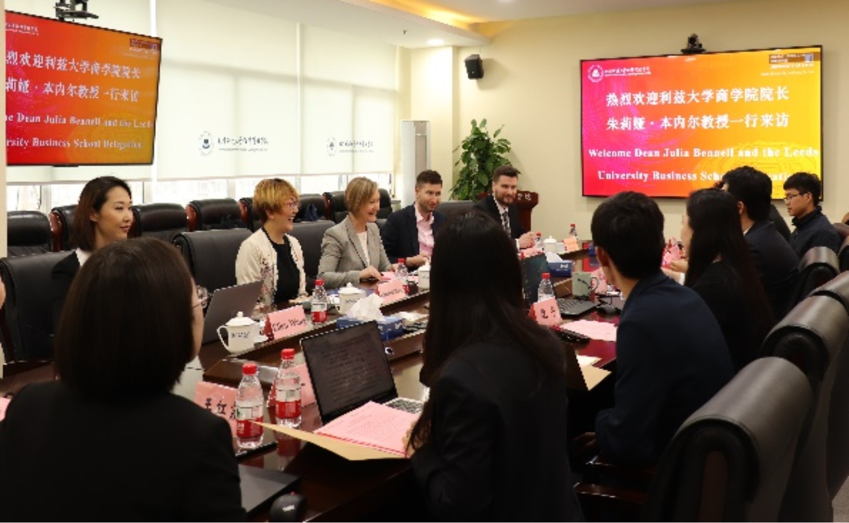 3月14日,英国利兹大学(University of Leeds)商91麻豆执行院长Julia Bennell率代表团访问我院并洽谈合作事宜。院长谷炜、副院长倪宇出席会见。此次访问是利兹大学常务副校长余海岁(Hai-sui YU)教授率团访问我校的重要组成部分,旨在通过签署合作协议,推动两校全方位、深层次合作。