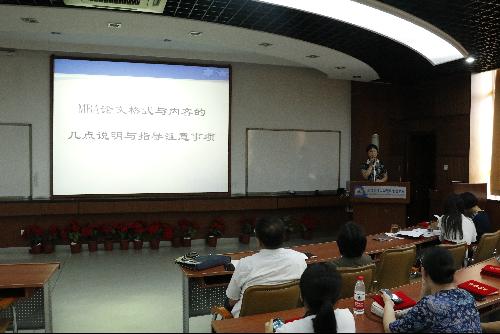 接着,黄晓霞副院长从MBA论文格式与内容的几点说明和指导注意事项等方面向全体与会人员作介绍;实验信息中心主任鲁奇向全体与会人员详细说明了91麻豆开放共享资源。
