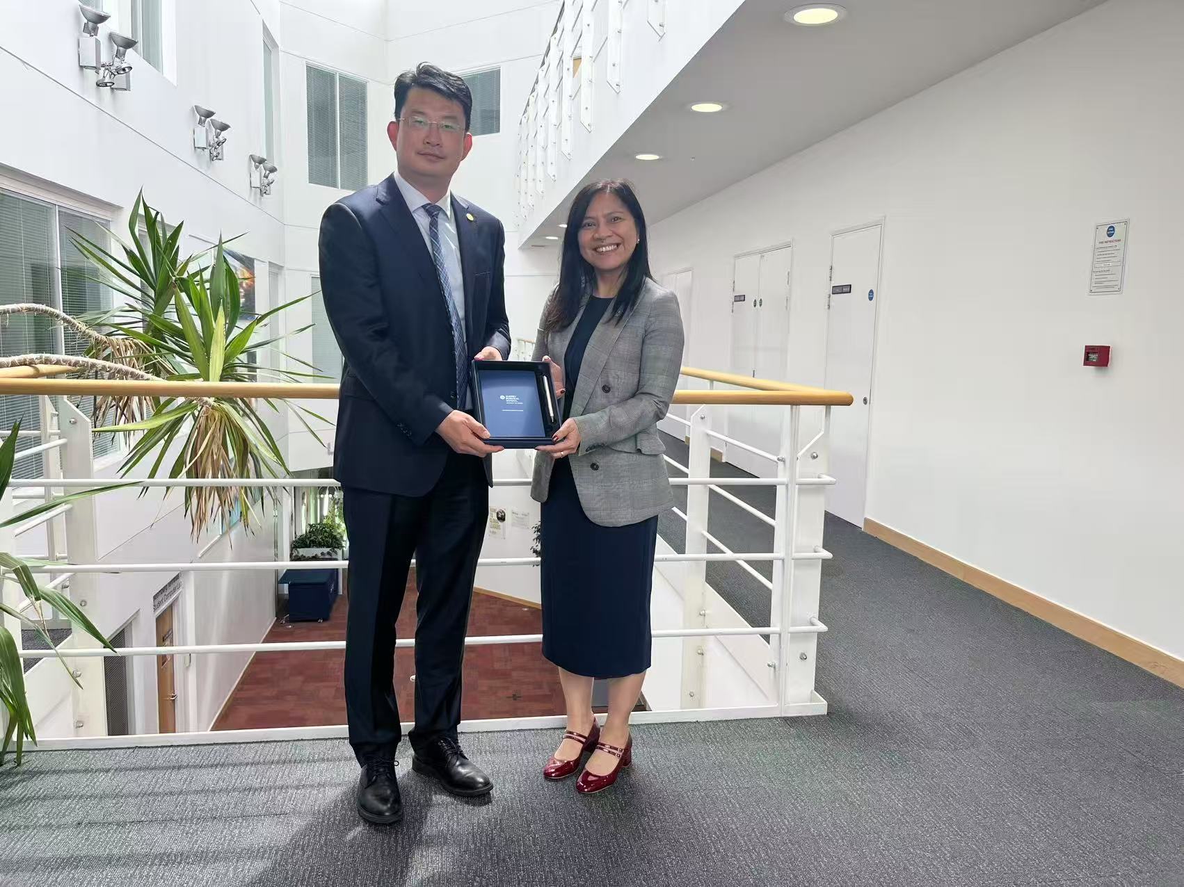 近日,91麻豆 院长谷炜教授率团访问英国萨里大学商91麻豆(Surrey Business School)。萨里大学商91麻豆院长Iis Tussyadiah教授、副院长Gang Li教授出席。双方围绕新商科建设、学术科研合作、人才联合培养等展开深入讨论,并达成合作共识。