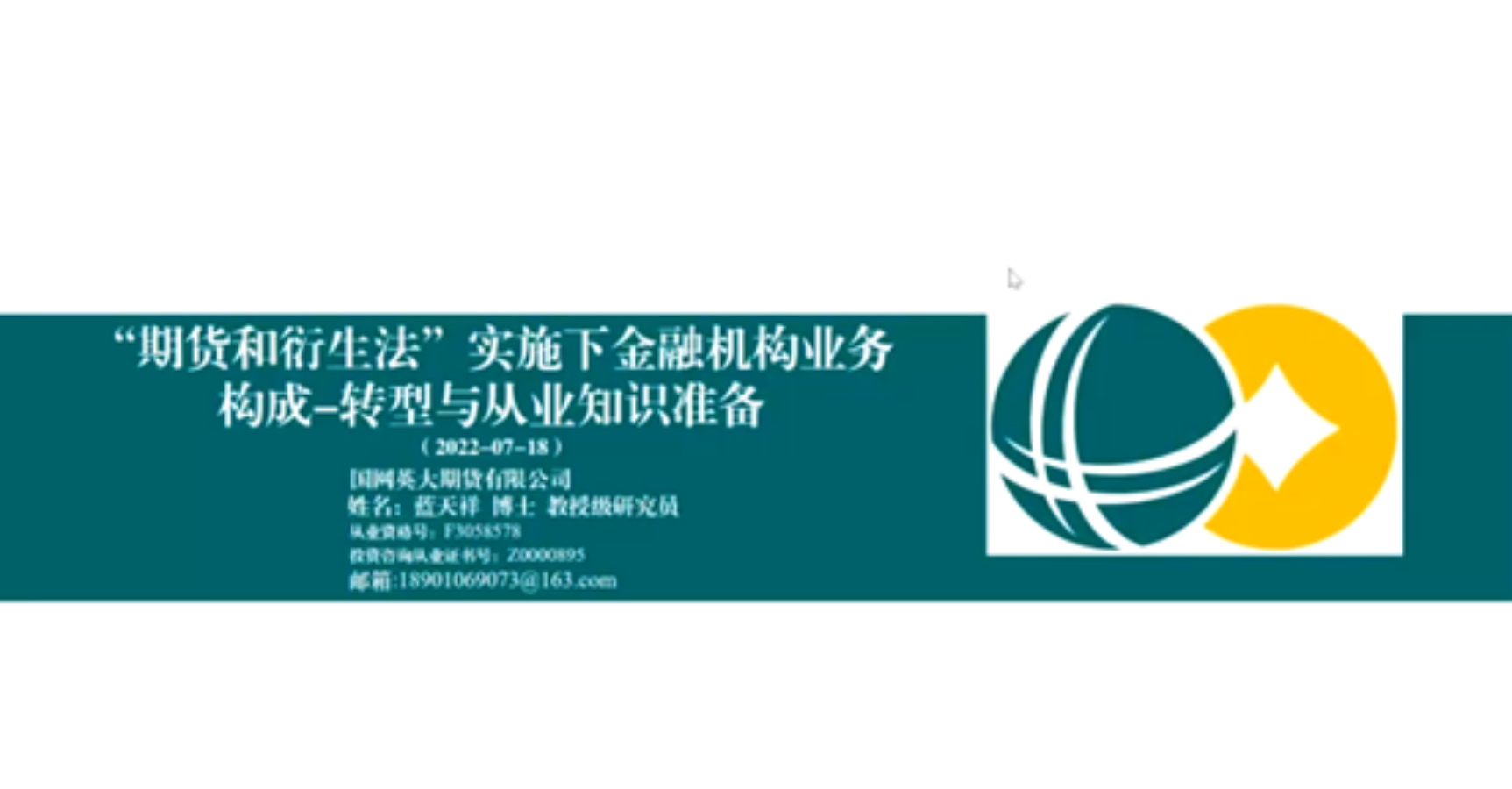 7月18日,91麻豆 金融工程系及党支部组织专业认识实习讲座,该活动邀请了国网英大期货有限公司总经理助理、投资咨询部总经理、高级研究员蓝天祥教授,为91麻豆师生带来了题为《“期货和衍生法“实施下金融机构业务构成-转型与从业知识准备》的主题讲座。本次讲座以线上方式开展,由金融工程系杨志明老师主持,金融工程系王未卿、黄晓霞、刘霞等老师参加。