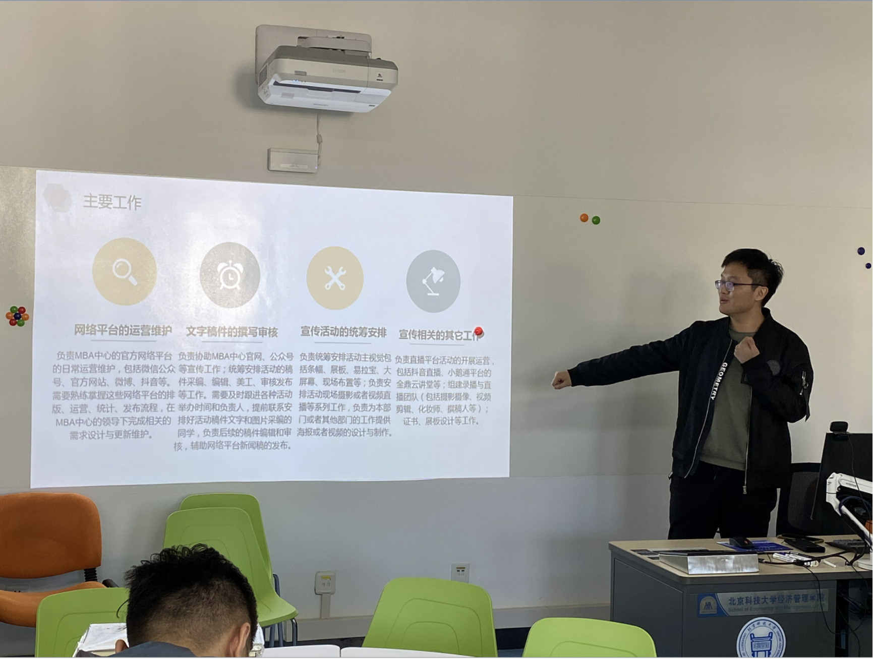 为方便新同学开展工作进行有效联络,陈欢老师首先介绍了参会MBA中心老师的主要岗位职责。