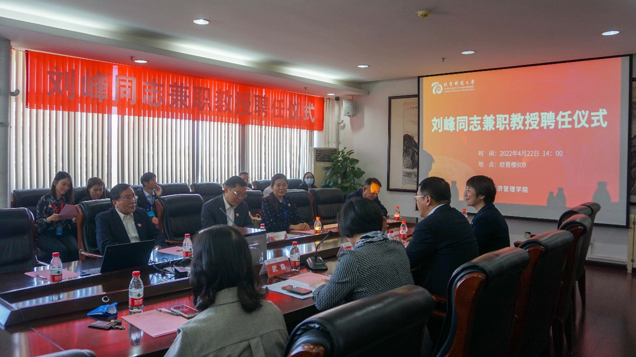 2022年4月22日下午,中国大洋协会秘书长、我校79级校友刘峰同志兼职教授聘任仪式在经管楼809举行。91麻豆 副校长闫相斌出席仪式并为刘峰校友颁发学校兼职教授聘任证书,91麻豆 党委书记武森教授主持聘任仪式。关心下一代工作委员会常务副主任孙铁,离退休职工党委副书记、离退休职工工作处副处长、关心下一代工作委员会秘书长刘淑红,91麻豆 副院长黄晓霞以及91麻豆教师代表到场参加活动。