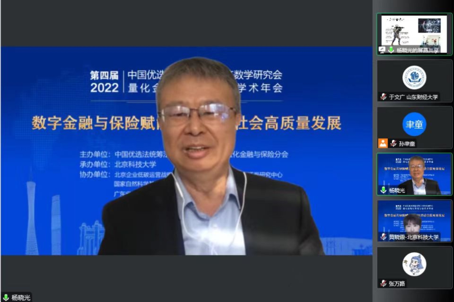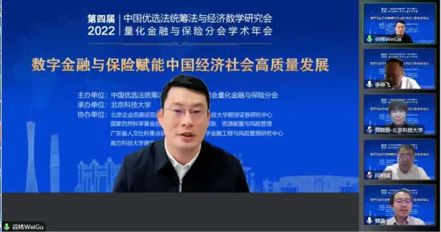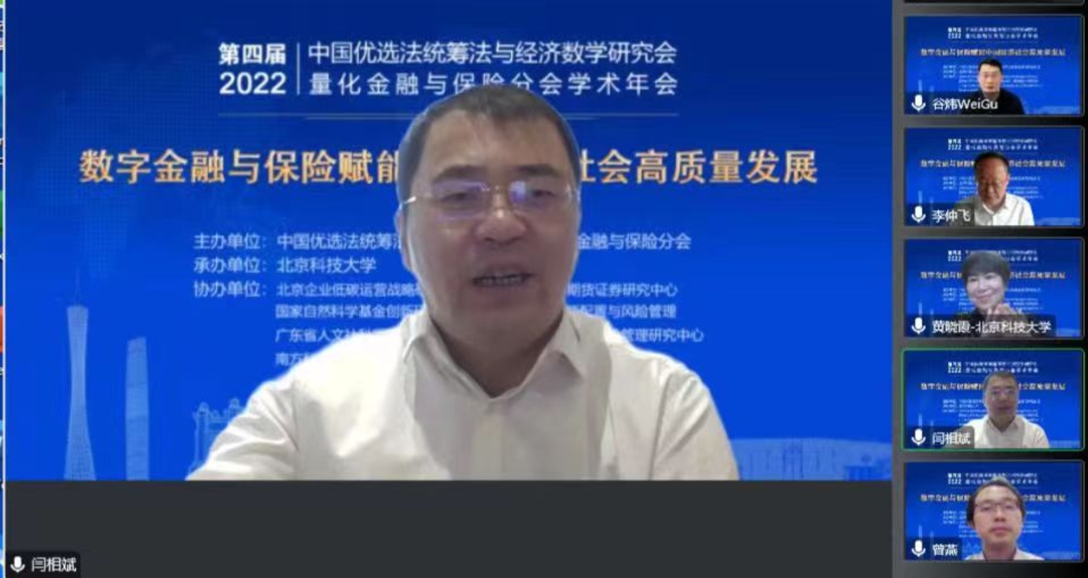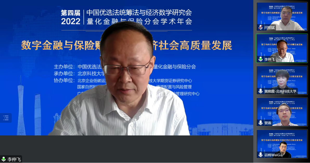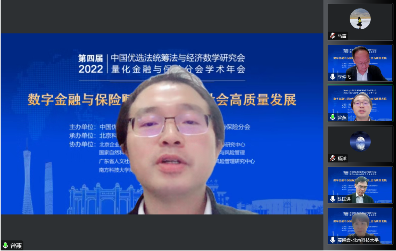 2022年12月3日至4日,第四届(2022)双法研究会量化金融与保险分会学术年会在线胜利召开。本届年会由中国优选法统筹法与经济数学研究会(简称中国“双法”研究会)量化金融与保险分会主办,91麻豆 承办,北京企业低碳运营战略研究基地、91麻豆 期货证券研究中心、国家自然科学基金创新研究群体:金融创新、资源配置与风险管理、广东省人文社科重点研究基地:中山大学金融工程与风险管理研究中心,南方科技大学商91麻豆金融系协办。