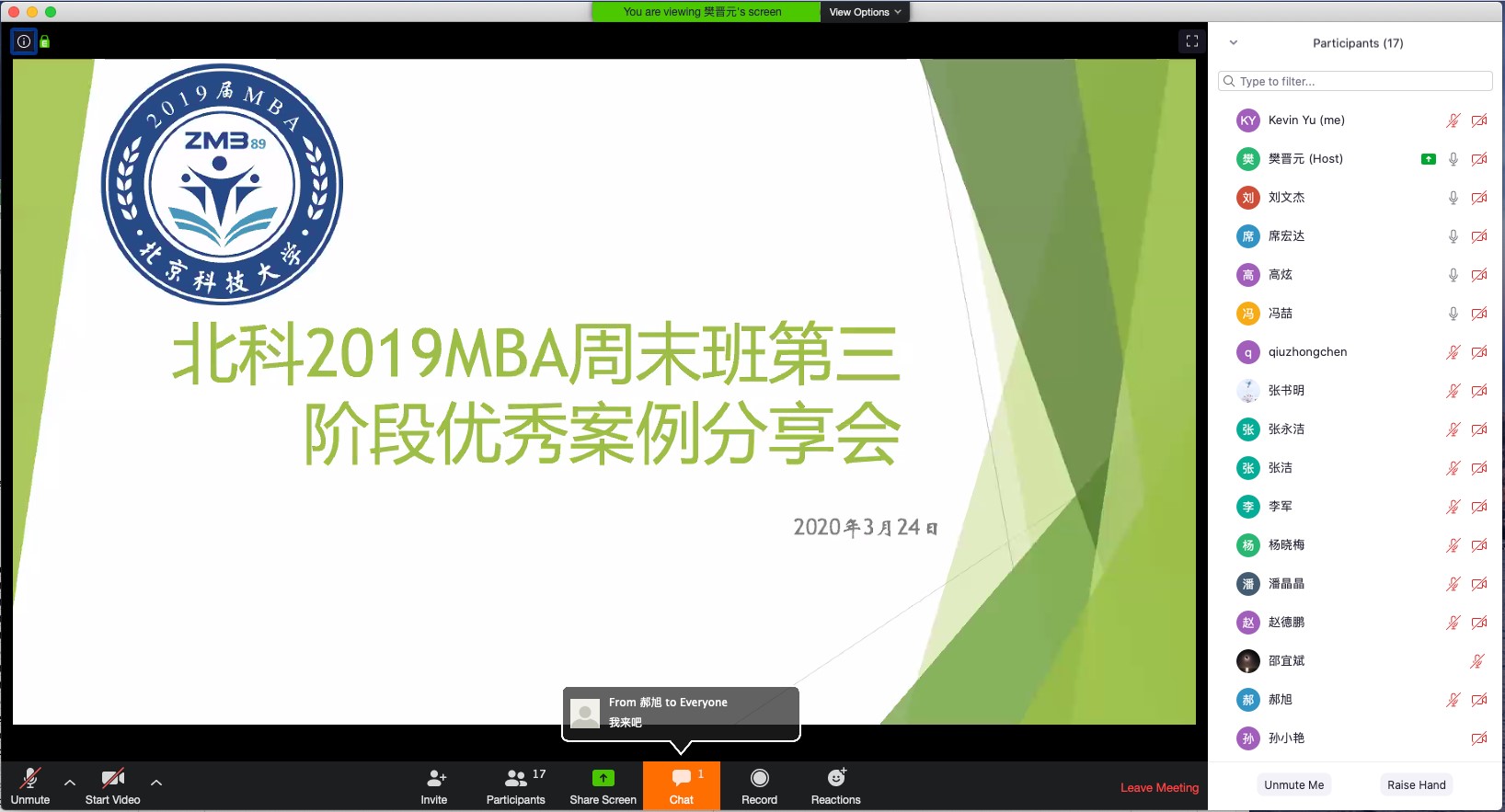 19MBA周末班优秀案例同学分享会