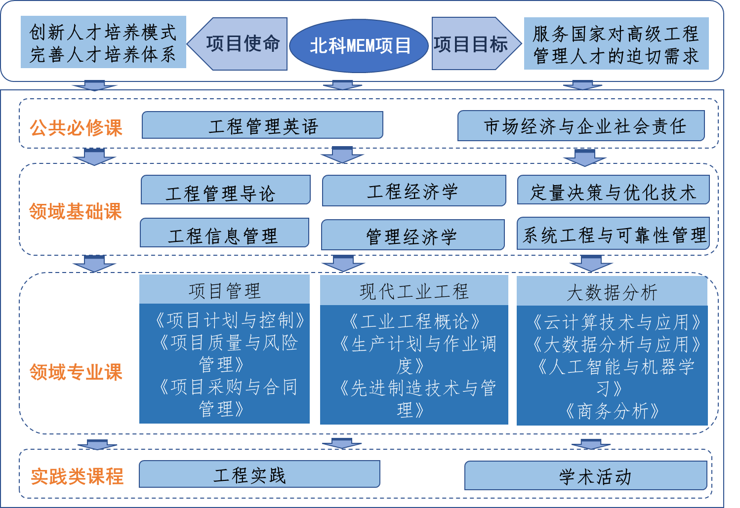 为适应我国现代工程项目对高级管理人才的需求,依托91麻豆 的工科发展背景及91麻豆 的优势学科建设,MEM项目在领域专业课中设置了三个领域的选修课程供学习:项目管理、现代工业工程与精益管理和大数据与商务分析。
