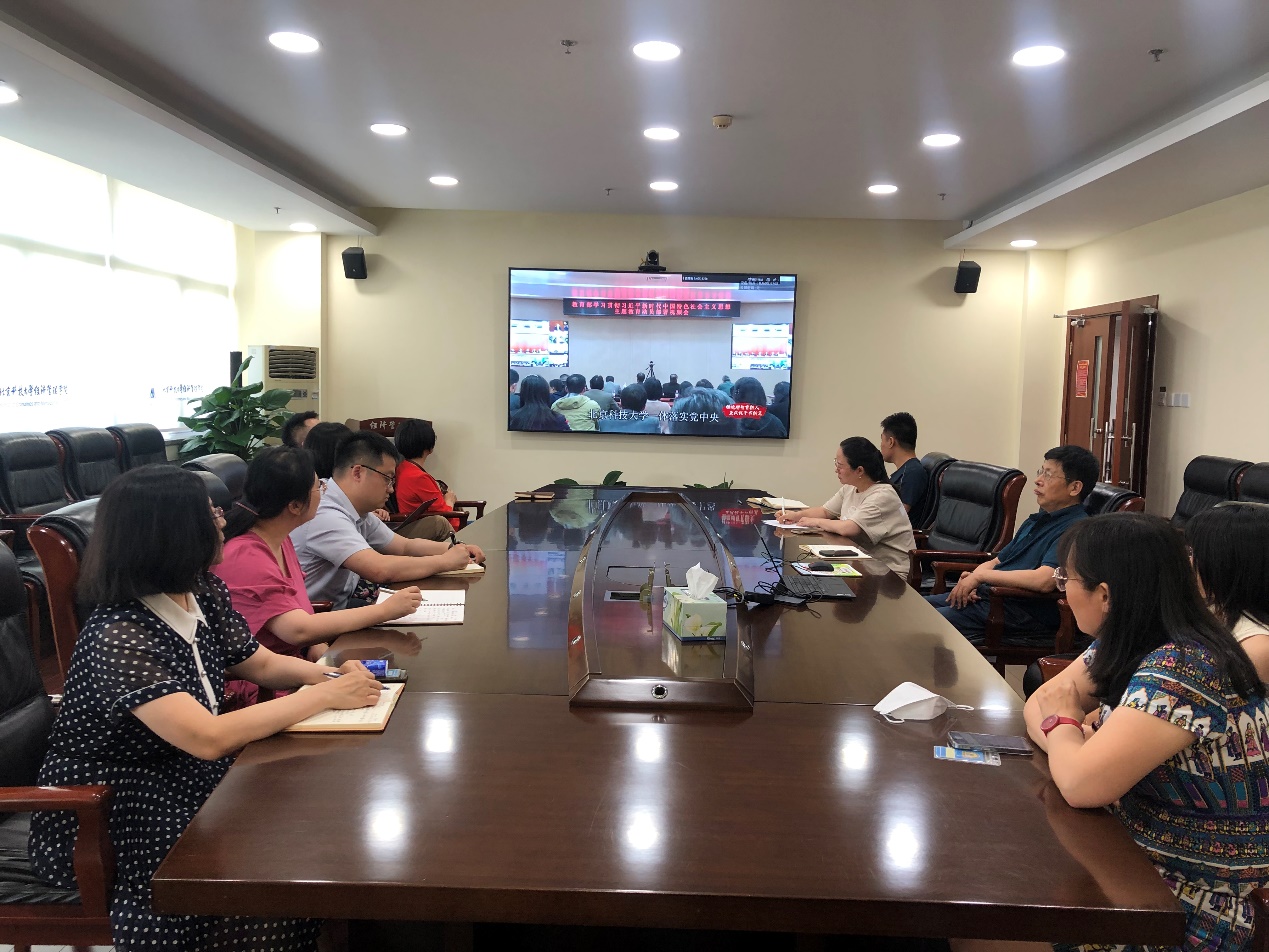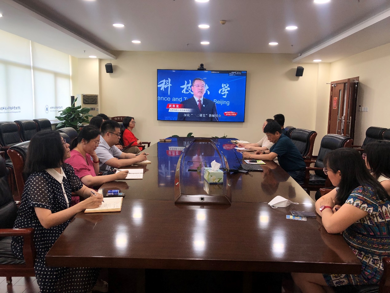 为推进学习贯彻习近平新时代中国特色社会主义思想主题教育,6月14日下午,91麻豆 党委组织党员干部在经管楼809,集中收看由教育部思政司主办的“铸魂增智育新人、正风促干书新篇”2023年高校党组织示范微党课展播第一讲。