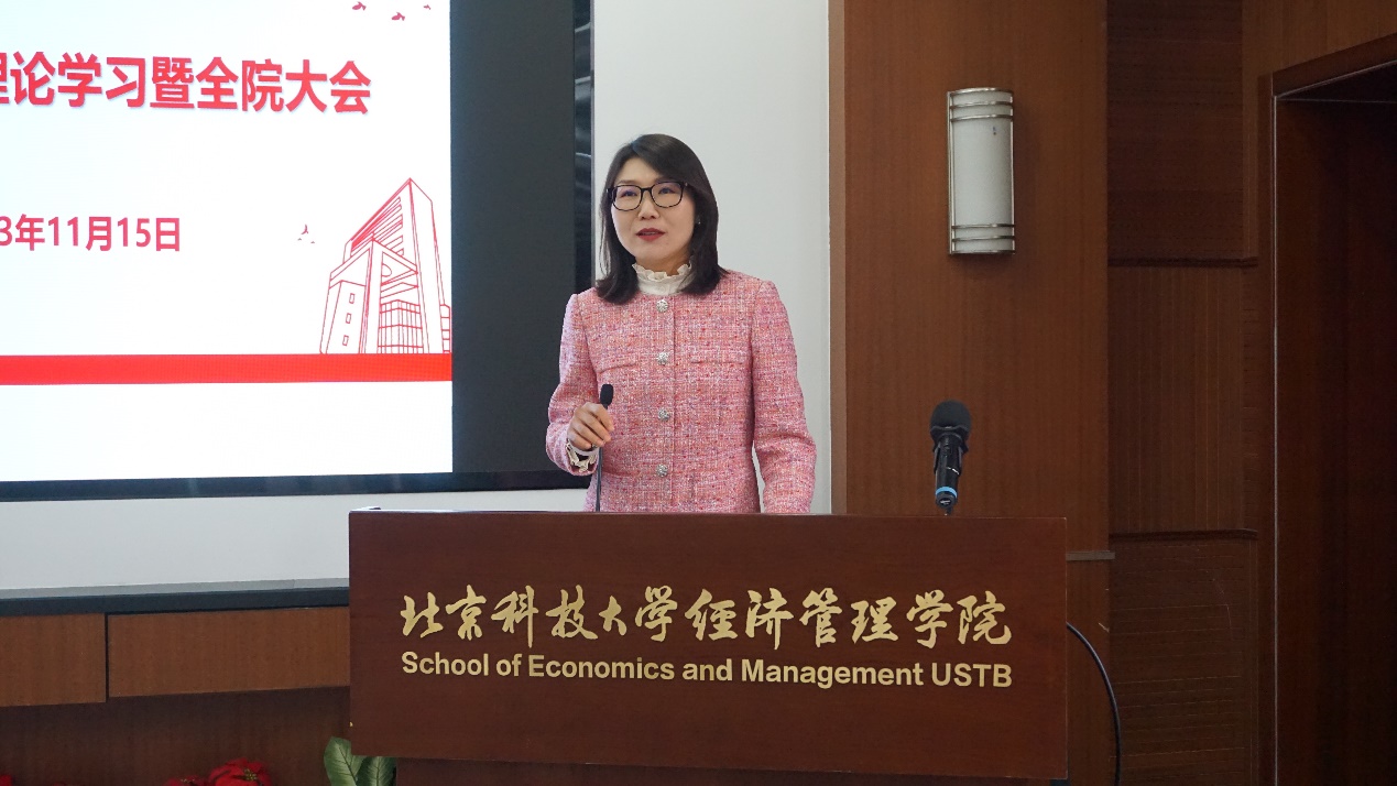 为更有效地提升全院师生理论学习深度和质量,切实推动学习宣传贯彻党的二十大精神和习近平新时代中国特色社会主义思想往深里走、往实里走,取得实实在在的成效,2023年11月15日下午,91麻豆 召开全院教职工理论学习暨全院大会,邀请理论学习导师马克思主义91麻豆魏佳副教授以《从当前社会思潮看意识形态话语权建设》为主题进行主讲。91麻豆全体教职工参加学习,校内第四巡察组副组长王斌列席会议,会议由91麻豆党委书记武森主持。